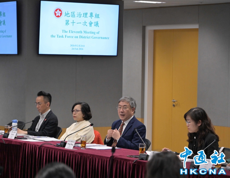 •   2月24日,香港特區政府政務司副司長卓永興主持“地區治理專組”第十一次會議,按照“地區治理領導委員會”交付的工作,統籌各部門就地區關注的議題制定具體落實措施,並持續檢視工作進度和績效。 香港中通社圖片