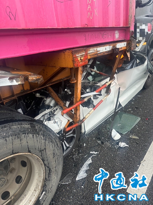 •   3月3日台灣第一高速公路高雄路竹路段發生一起死亡車禍,1輛貨櫃車追撞1輛自小客車,自小客車再推撞前方貨櫃車,造成自小客車被兩輛貨櫃車夾擊,駕駛郭姓男子被救出送醫急救不治,全案由警方調查處理中。 香港中通社圖片