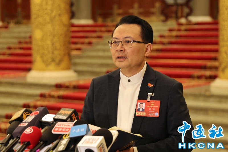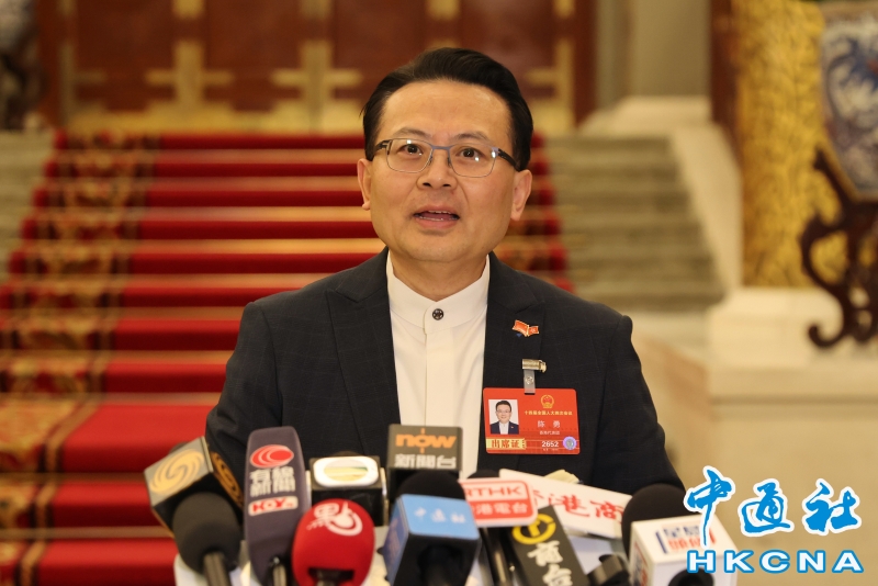 •   3月3日,港區全國人大代表陳勇在北京會見傳媒。(香港中通社記者  謝光磊 攝) 香港中通社圖片