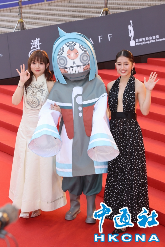 •   4月19日,香港影壇盛事“第44屆香港電影金像獎”頒獎禮在香港文化中心舉行。一眾演員從尖沙咀海濱長廊踏上紅地氈,以最靚姿態示人。圖為蔡曉童(左)、楊雅文(右)亮相紅地毯。 (香港中通社記者  謝光磊 攝) 香港中通社圖片