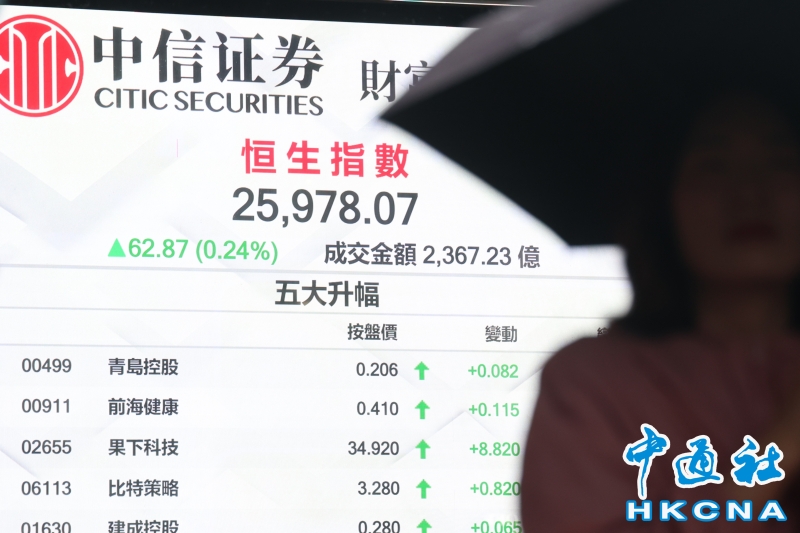 香港恒生指數漲62.87點 報25978.07點收盤分享到: