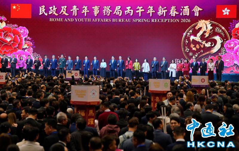香港中通社2月23日電 (記者 張明臻)丙午馬年新春,香江年味正濃。2月23日下午,香港特區政府民政及青年事務局在會展舉行新春團拜活動,行政長官李家超與夫人林麗嬋出席,與特區官員、地區領袖及青年代表歡聚一堂、互致祝福,共繪新一年香港的美好願景。