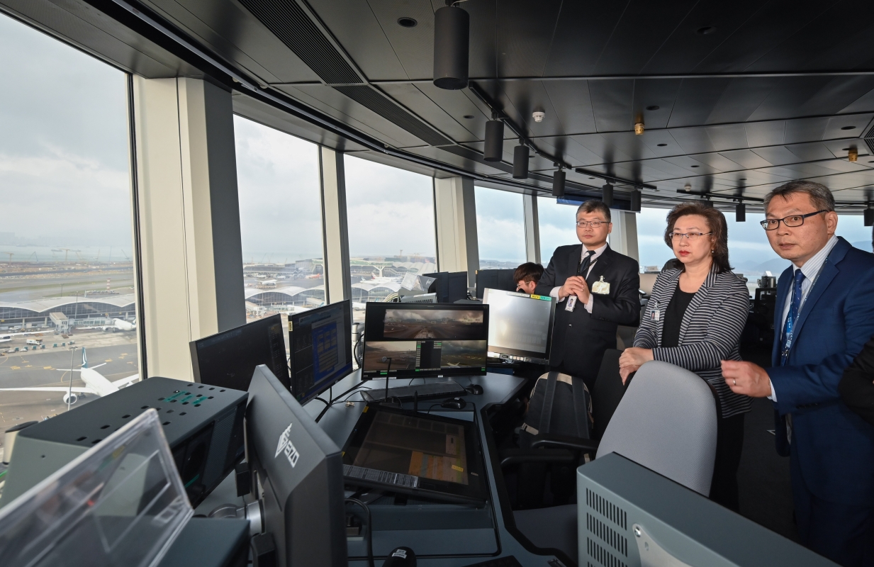 楊何蓓茵到訪民航處總部,了解部門的最新發展和聆聽員工的意見。圖示楊何蓓茵(中)在航空交通管制塔聽取民航處處長廖志勇(右)介紹當值同事的日常工作情況。旁為民航處助理處長(航空交通工程服務)許文豪(左)。 楊何蓓茵在公務員事務局常任秘書長梁卓文陪同下,首先與民航處處長廖志勇和首長級人員會面,聽取他們介紹部門在監管航空安全和提供空中導航服務方面的最新情況及挑戰,並與部門各職系的員工代表見面,就他們關注的事宜交換意見。 楊何蓓茵說,香港已啓動“你好,香港!”大型全球宣傳活動,並與全世界恢復正常聯繫,民航處的角色十分重要,必需安全有序地安排航班升降和過境,並為各樣預案做好準備,齊心為香港增強發展動能,發揮好聯通世界的獨特優勢。同時,政府正推動“機場城市”的發展策略,將香港國際機場發展成為不同經濟活動的樞紐,以航空為核心,結合新發展和新功能,推動香港及鄰近地區的經濟增長。 香港國際機場整個三跑道系統預計於2024年年底完成,屆時將大幅提升機場的客貨運能力。楊何蓓茵表示,同事必須與時並進,全力以赴,推動航空業發展。 楊何蓓茵此行亦參觀位於機場禁區內的航空交通管制塔,並聽取當值同事介紹他們的日常工作情況,包括如何透過雷達顯示系統及通訊設備,向飛機師提供適當的指示引領飛機安全及有效率地進出香港的空域。(完) 【編輯:崔靜雯】