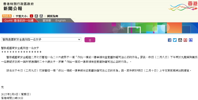 香港新聞網9月25日電 香港警務處國家安全處昨日(24日)正式落案起訴一名63歲女子一項“妨礙司法公正”罪。消息指,該名女子為李卓人妻子鄧燕娥的妹妹鄧燕梨。 警方國安處於今年3月11日在港島區拘捕該名女子,涉嫌串謀妨礙司法公正。案件將於9月28日上午在西九龍裁判法院提堂。
