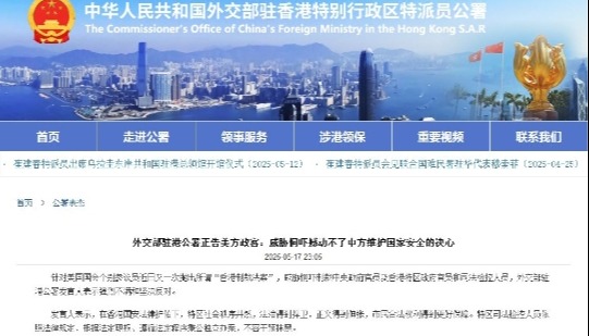 駐港國家安全公署網站截圖 發言人指出,香港是法治社會,中央支持香港維持普通法制度,以憲法和基本法為基礎的特別行政區憲制秩序穩健運行。香港國安法實施以來,特區管治團隊忠誠勇毅、無畏制裁,堅決扛起全面落實香港國安法的憲制責任。特區執法部門始終依法履職,有力打擊極少數人危害國家安全的犯罪行為;特區律政司始終以事實為依據,嚴把證據關、法律關,依法作出檢控決定;特區司法機關獨立行使審判權,依法公開公平公正進行審理和判決,有力捍衛了法治尊嚴,切實保障了香港市民的權利和自由,得到香港社會普遍支持,香港由亂到治局面日益鞏固,由治及興發展穩步向前。 發言人表示,去年7月以來,美國少數政客包藏禍心,頻繁炮製法案,抹黑攻擊香港司法制度,以所謂“香港人權”為幌子老調重彈,進一步向香港法官和檢控官揮舞制裁大棒,完全無視國際法和國際關係基本準則,公然踐踏法律公義,插手他國內政,妄言威逼恫嚇,目的是干擾特區正常的執法、檢控和審判工作,阻撓香港國安法有效實施,妄圖使反中亂港分子逃脫法律懲治,讓香港重回亂局。事實證明,這種霸凌式的製裁再多再濫都將是廢紙一張,絕不可能動搖中央和特區依法維護國家安全的意志決心。在中央堅強領導下,在憲法、基本法和香港國安法的有力保障下,在香港特別行政區、駐港國家安全公署以及社會各界團結努力下,香港特區無懼任何威脅恐嚇,必將堅定捍衛香港法治,確保“一國兩制”事業堅如磐石。 發言人強調,駐港國家安全公署高度警惕外部勢力干涉香港事務、破壞特區法治的企圖,將深入推進香港國安法實施,採取一切必要手段和措施,有效防範、制止和懲治一切危害國家安全的行為和活動,堅定支持特區政府和特區司法、檢控機關依法行使職權,與特區一道共同築牢香港維護國家安全的堅強防線。(完) 【編輯:林曉惠】