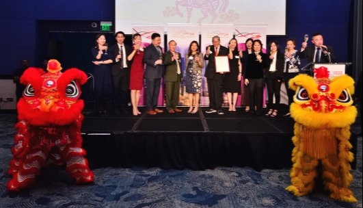 香港新聞網4月12日電 香港駐紐約經濟貿易辦事處於當地時間4月11日,在芝加哥舉行新春酒會,特區政府財經事務及庫務局局長許正宇為當晚的主禮嘉賓。
