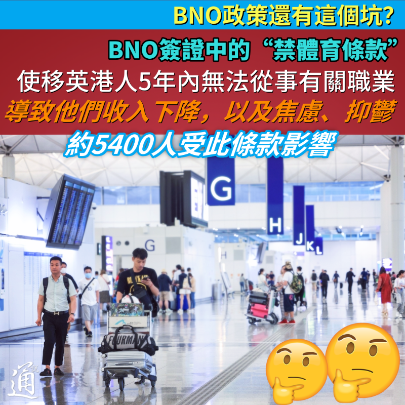 5年無法從事體育工作 香港BNO移民焦慮抑鬱香港新聞網2月18日電 原來,BNO政策的坑這麼多? 一群在英國的港人組織近日赴瑞士日內瓦出席聯合國經濟、社會及文化權利委員會會議,哭訴移英港人在英國面臨的困難,包括由於BNO簽證中的“禁體育條款”,使港人無法從事有關職業,導致他們收入下降,更患上焦慮、抑鬱等心理問題。 據美媒報道,在英港人組織——“蘇格蘭香港人”創辦人郭子健不滿,BNO簽證持有人因“禁體育條款”而在參與體育工作方面受到限制。根據條款,簽證持有人5年內被禁止從事專業運動員或教練工作。 根據“蘇格蘭香港人”的研究,4%的BNO簽證持有人,即大約5400人受此條款影響,當中大部分原本為體育教練,也有職業運動員,以及從事體育管理、裁判或考官的人士。 無法從事擅長的事業,不少人不得不轉行至低薪工作,導致他們收入下降並產生心理問題。