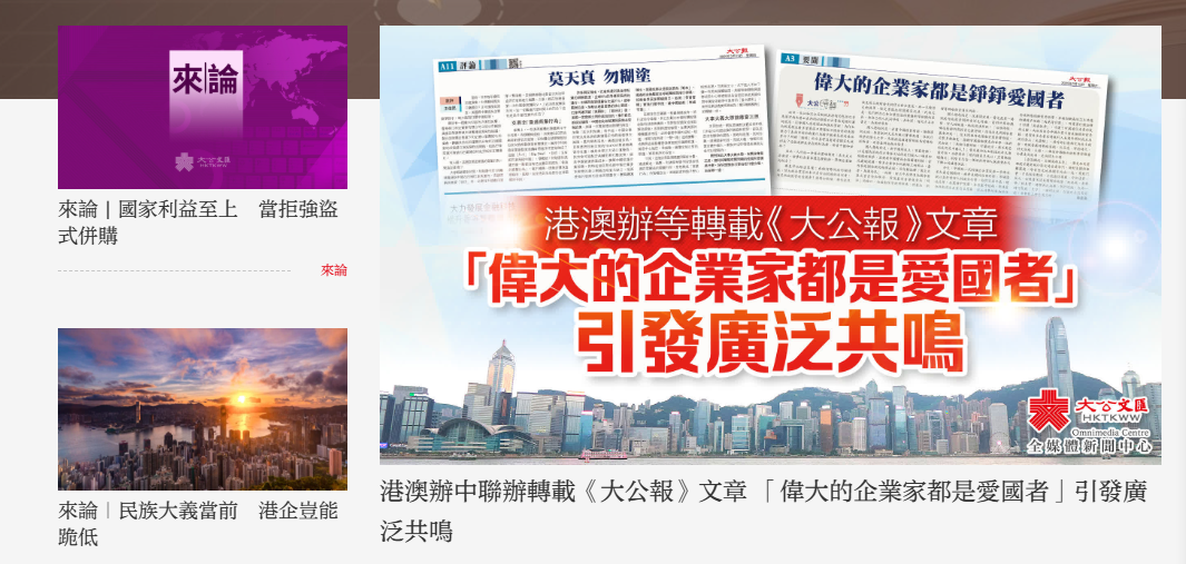 大公文匯網刊出多篇來論文章評長和港口交易香港新聞網3月17日電 近日,香港知名企業長和集團擬將包括巴拿馬運河兩大港口在內的43個海外港口售予美國貝萊德牽頭的財團,引發廣泛關注。大公文匯網16日繼續發出多篇來論文章,強調百年變局下,港企更須扛起國家責任,“此交易,請三思”。