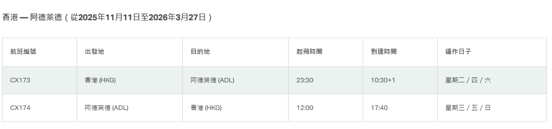 國泰航空11月將恢復往返香港與阿德萊德直航航班分享到: