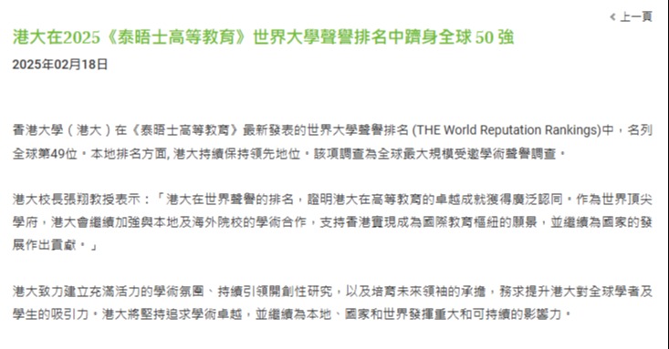 全球最佳大學教育及教育研究學科排名出爐 香港大學位居第一分享到: