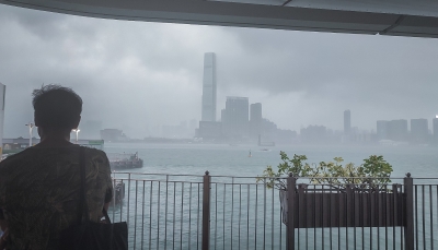 9月8日清晨,香港市民冒著滂沱大雨出行。香港遭遇自有紀錄以來最大暴雨,天文台7日晚11時05分發出今年首個黑色暴雨警告信號。 特區政府8日早啟動“極端情況”安排,指香港出現廣泛地區水浸,以及公共交通嚴重受阻的極端情況,所有日校今日停課。 同時提醒雇主,除必要人員外,不應要求雇員返回工作地點上班。 (香港中通社記者 洪少葵攝)