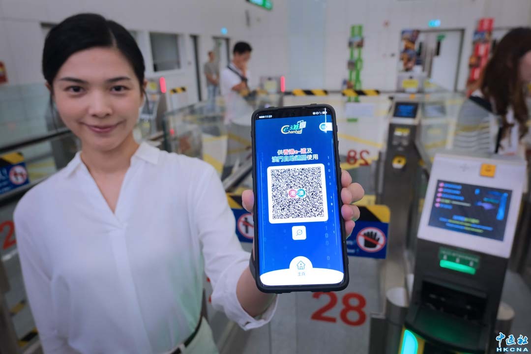7月19日起,香港特區政府和澳門特區政府攜手合作推出港澳通關便利措施,兩地合資格居民可透過各自的“港澳通關二維碼”通關,無需出示實體身份證,進一步便利兩地居民跨境出行。圖為7月18日工作人員向記者示範用二維碼過境澳門。(香港中通社記者 許其皓攝)
