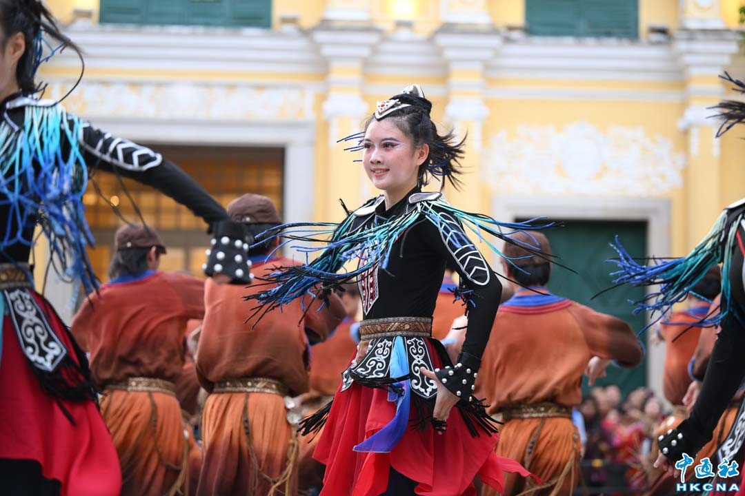 7月20日,由澳門教育及青年發展局主辦的“學界青年慶回歸大匯演暨國際青年舞蹈節”的首場節目國際青年舞蹈節巡遊演出在大三巴牌坊至議事亭前地舉行。社會文化司司長歐陽瑜出席主禮,內地及港澳以至海外共30多隊約1,500人參演助陣。香港中通社圖片