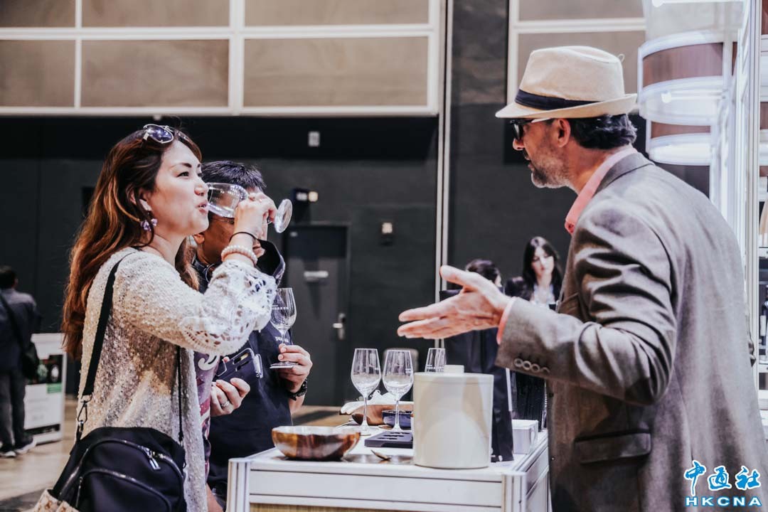 由香港貿易發展局主辦的香港國際美酒展7日開幕,將一連三天在灣仔會議展覽中心舉行。展覽網羅逾600家、來自20個國家和地區的參展商,亦包括17個展團,助推香港成為區內酒類貿易樞紐。展覽首兩日向業內買家開放,最後一日則開放指定展區“Wine Fiesta”予公眾人士憑票入場。展會現場觥籌交錯,買家紛紛品酒及洽談生意。(香港中通社記者 曹文毓攝)