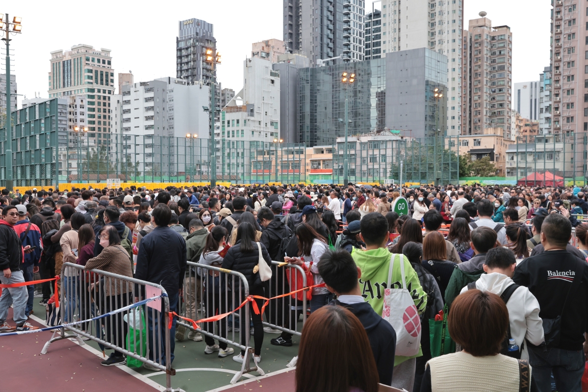 香港新聞網2月23日電(記者 謝光磊 ) 2月23日,農曆正月廿六日是“觀音開庫”的日子,大批善信前往廟宇祈福借庫。借庫熱點的紅磡觀音廟,今年借庫利市金額由3000萬至10億不等。當日,有海量善信在廟外“排長龍”,人龍延伸至附近的球場。 “觀音借庫”是民間信仰,又名觀音開庫。起源有說,觀音大士修道期間,500護法羅漢化身和尚,下凡為考驗觀音之修行,到觀音廟化緣討飯,觀音於是日農歷正月廿六大開倉庫,給和尚們享用齋菜,其餘食物留給到訪參拜的善信。此民間傳說成為約定俗成,化為善信按是日到觀音廟酬神、借庫之宗教活動,同時會舉行生菜會。