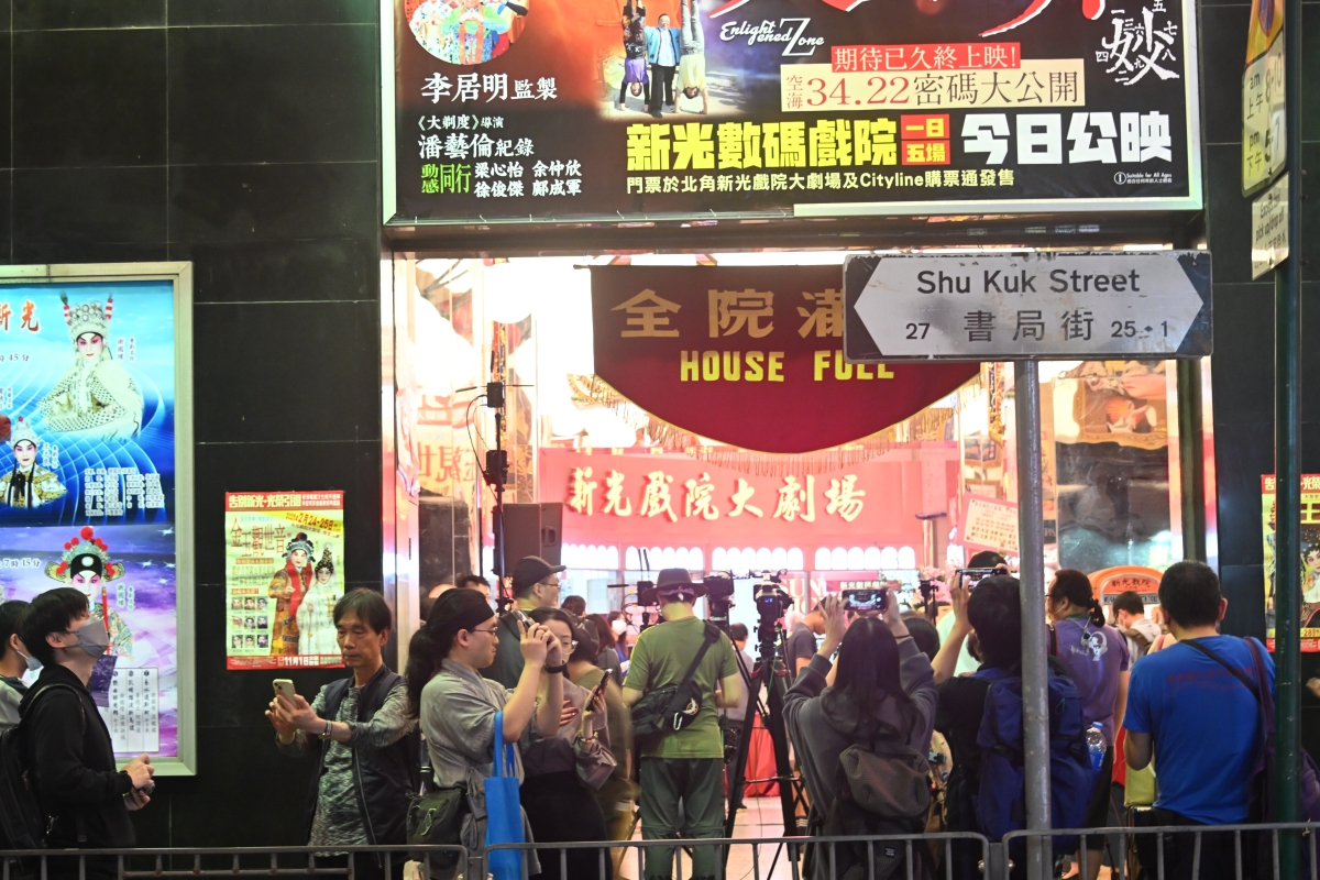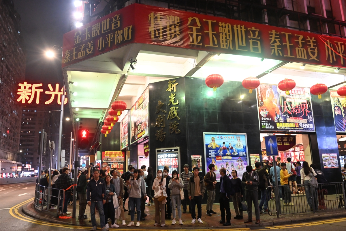 香港新聞網3月3日電(記者洪少葵)3月3日,大批市民和媒體在戲院等待落幕熄燈。當天晚上,屹立北角超過50年的新光戲院結業。 新光戲院在上演最後一出粵劇後,晚上拉閘熄燈正式結業。