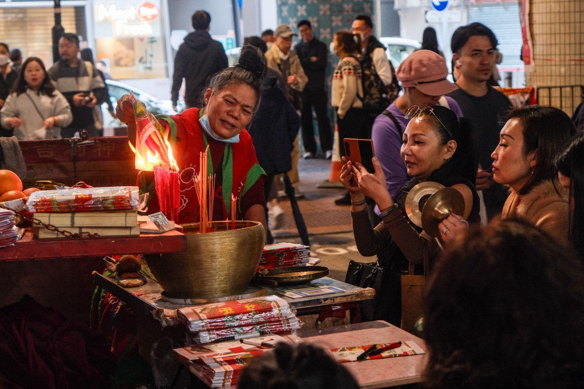 3月5日,中國傳統二十四節氣“驚蟄”日,香港鵝頸橋熱鬧非凡,許多市民排隊“打小人”。
