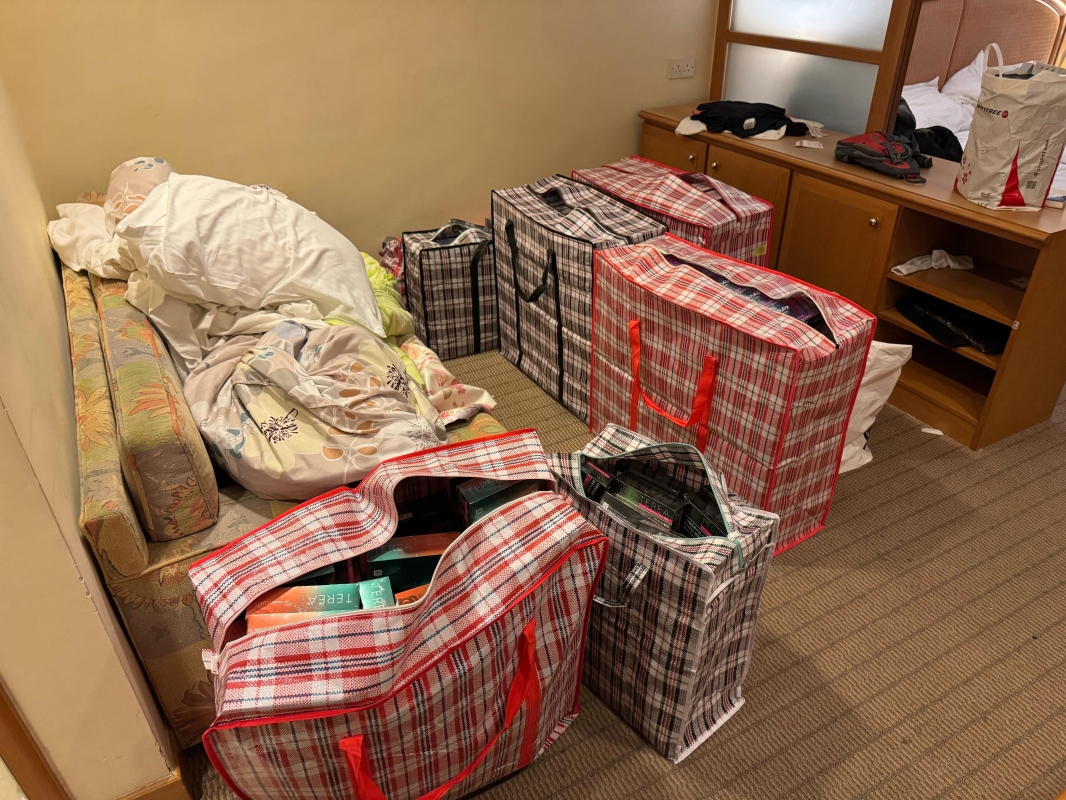 圖示於該區一個酒店房間內部分檢獲的懷疑私煙及懷疑另類吸煙產品(圖源:香港海關) 海關人員7日凌晨時份,在天水圍一間酒店外截查一名男子,於其尼龍袋及入住的酒店房間內共檢獲約9萬支懷疑未完稅香煙及約11萬支懷疑另類吸煙產品,逐把他拘捕。海關根據調查所得,相信有私煙集團利用航空旅客攜帶私煙及另類吸煙產品入境,並存放於酒店房間內再作分銷。 被捕男子三36歲,報稱無業,已被落案起訴並於8日在屯門判裁法院提堂。而檢獲的懷疑另類吸煙產品將會轉交衞生署跟進。 同時,海關在過去兩星期於機場共破獲20宗走私香煙案件,拘捕13男8女,檢獲共約60萬支懷疑私煙及約46萬支懷疑另類吸煙產品,估計市值共約400萬港元,私煙應課稅值約200萬港元。 海關相信是次行動成功瓦解一個利用旅客走私香煙及另類吸煙產品的犯罪集團。 另外,經深入調查,海關6日突擊搜查一個位於元朗的物流倉庫,期間發現一名男子正在將貨物搬上一輛貨車,海關人員隨即上前截查,於該貨車及倉庫內合共檢獲約600萬支懷疑私煙,並隨即拘捕該名44歲報稱貨車司機的男子。該名男子現正保釋候查。 海關會繼續根據風險評估和情報分析從源頭堵截,並透過針對貯存及分銷販賣多管齊下的執法策略,致力打擊私煙活動。 海關強調買賣私煙同屬違法。根據《應課稅品條例》,任何人若處理、管有、售賣或購買私煙即屬違法,一經定罪,最高可被判罰款100萬港元及監禁2年。(完) 【編輯:梁嘉軒】