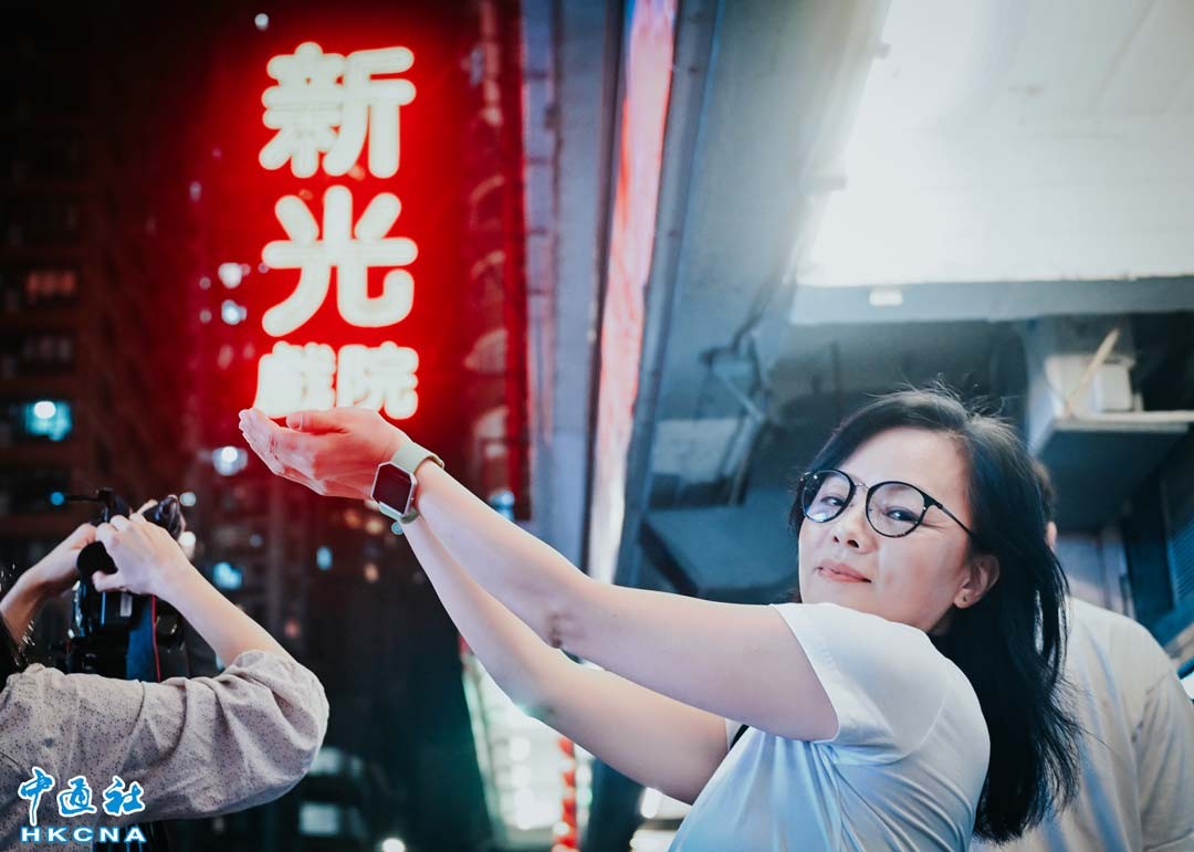 3月3日晚上,大批市民和媒體記者在北角新光戲院等候新光戲院落幕熄燈。 新光戲院大劇場前身是新光戲院,於1972年開幕,為香港少數現存的大型粵劇表演場地。(香港中通社記者 洪少葵攝)