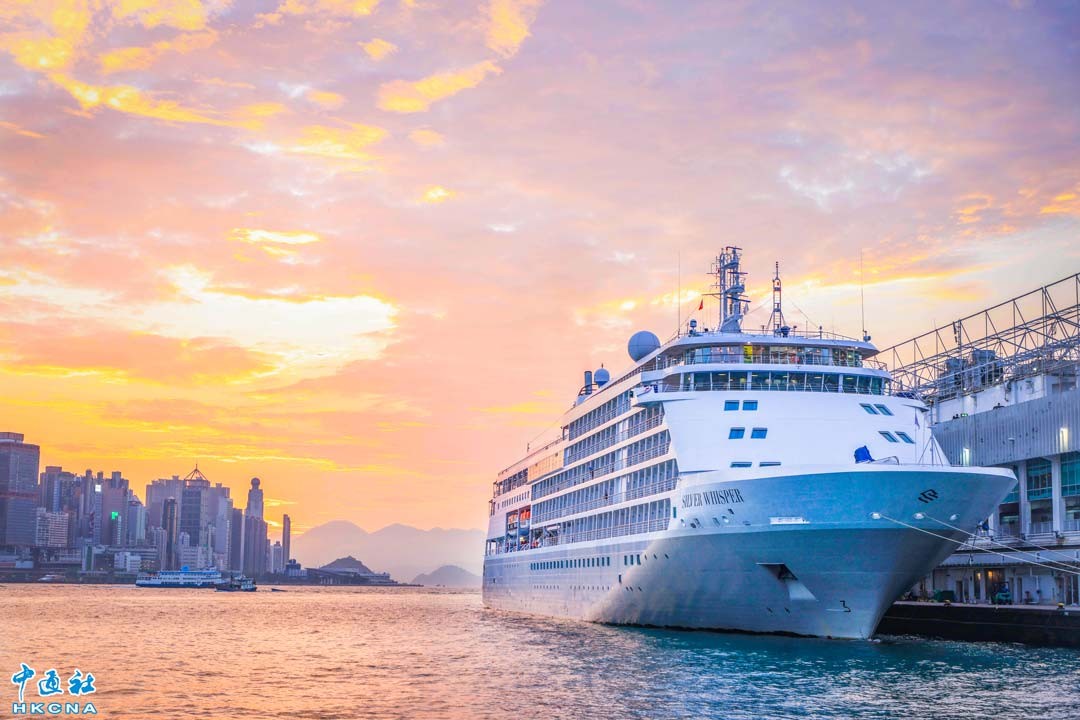 3月9日,香港特區政府文化體育及旅遊局局長羅淑佩表示,3月共有17艘大型郵輪停泊香港。資料圖為郵輪停泊尖沙咀碼頭。(香港中通社記者 許其皓攝)