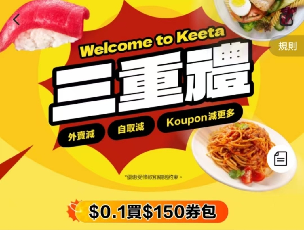 Keeta推三重禮 一毫子即享150港元優惠分享到: