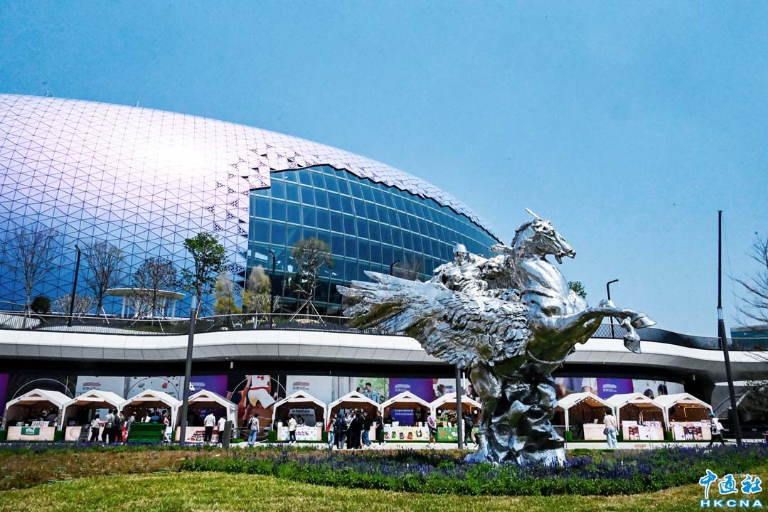 3月21日起至27日,啟德體育園首次舉辦“啟德藝術周”,以“啟德百感”為靈感,舉辦一系列藝術活動,融合創意與多元體驗的藝文盛宴。啟德體育園特別聯同國際與香港多名藝術家及設計單位,包括中國雕塑藝術家任哲,澳大利亞藝術家當文歷·索頓,香港本地年輕藝術家羅霆、梁軒駿、胡曉宜等,在園區不同角落設置匠心獨具的藝術裝置。圖為中國藝術家任哲雕塑《壯志凌雲 》。(香港中通社記者 洪少葵攝)