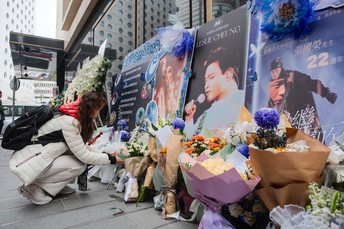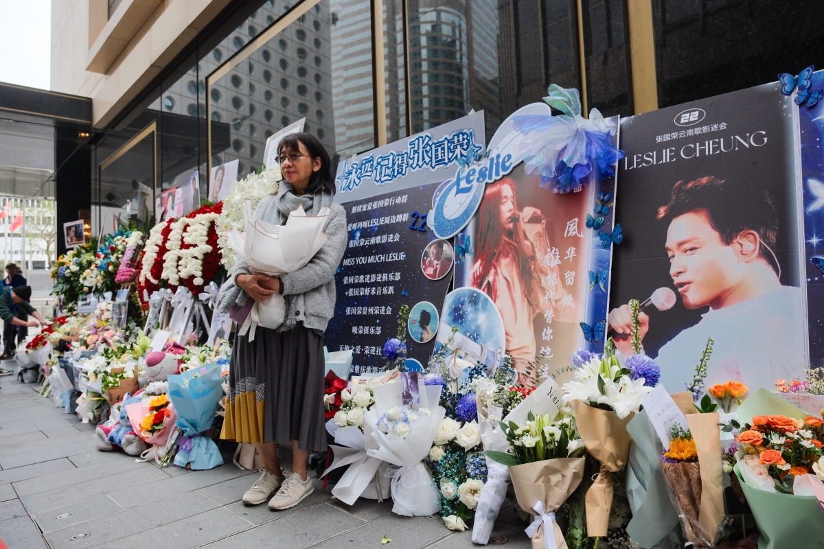 香港新聞網4月1日電(記者 許其皓)  4月1日,香港中環文華東方酒店外有大批歌迷粉絲獻花,悼念香港著名藝人張國榮逝世22周年。2003年4月1日18時43分,香港歌星張國榮從香港文華東方酒店24樓跳下自殺身亡。