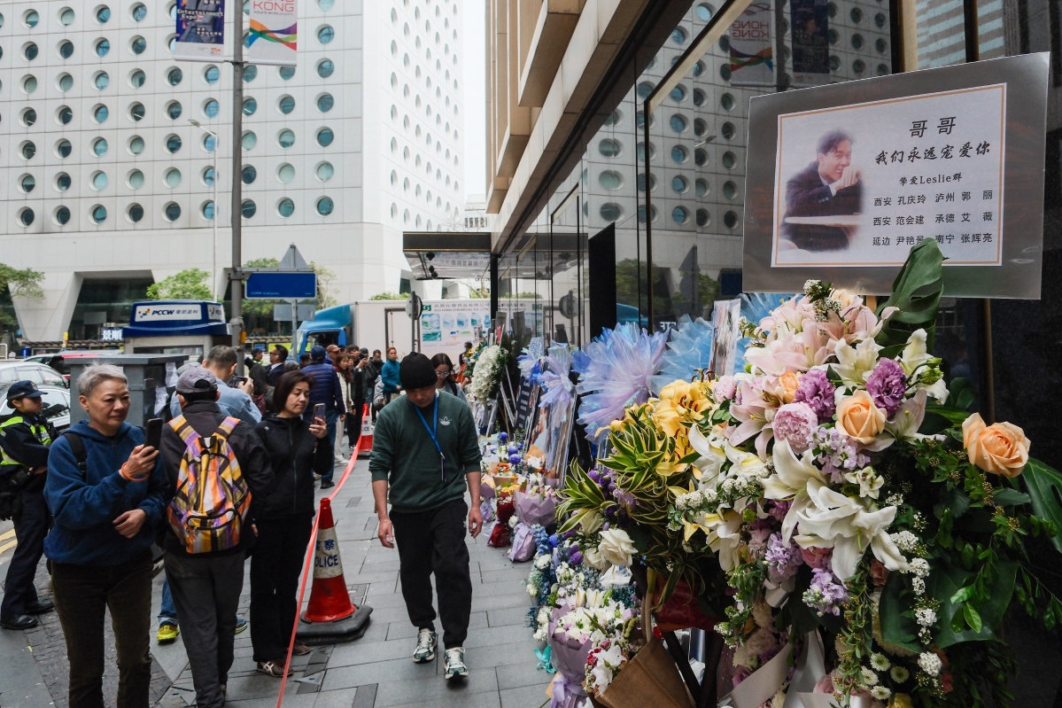 不少市民到文華東方酒店外悼念已故歌星張國榮