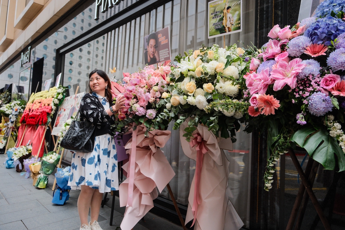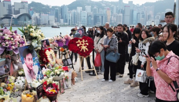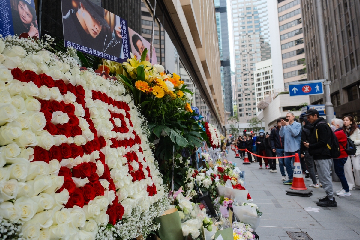 香港中環文華東方酒店外有大批歌迷粉絲獻花
