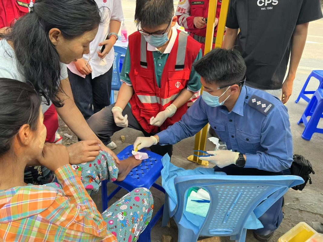 香港新聞網4月4日電  緬甸地震導致嚴重災情,香港特區救援隊與國家救援隊4日在受災區域搭建帳篷,為當地民眾提供免費醫療服務。