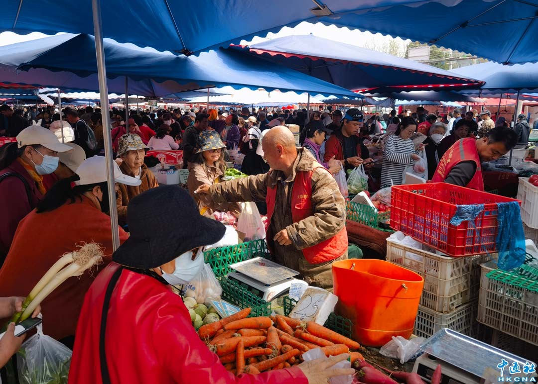 中國中央氣象台4月11日6時發布大風橙色預警,位於北京市昌平區龍澤園街道文化市場格外火熱,市民紛紛購買蔬菜水果儲存避風。4月12日8時至13日8時,新疆東部、陝西北部、內蒙古中東部及東北地區中南部、華北、黃淮、江淮東部、江漢東部等地部分地區有6級~8級大風,陣風9級~10級。其中,內蒙古中東部、山西北部、河北北部、北京西部和北部山區等地局地陣風風力可達12級~13級。(聞子 攝)