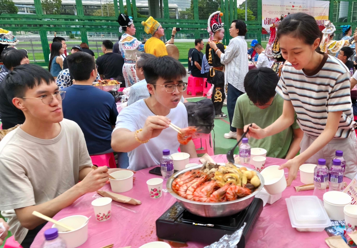 香港新聞網4月18日電 (記者洪少葵)4月18日下午,香港民政事務總署、香港汕頭社團總會與南區各界合辦“南區各界盆菜暖萬心2025”在黃竹坑遊樂場足球場舉行。活動旨在透過舉辦盆菜宴,供南區內的長者及弱勢社群一同享用,讓他們感受社區的關愛。現場近千桌盆菜,規模盛大,英歌舞在會場穿梭表演,場面熱鬧。