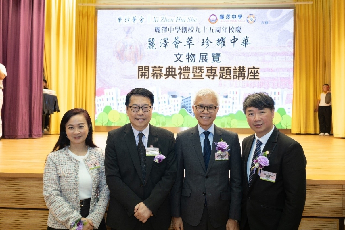 立法會陳凱欣議員(左一)、麗澤中學校監劉國偉牧師(左二)、香港故宮文化博物館館長吳志華博士(右二)、麗澤中學李潔明校長(右一) 展覽中,參觀者欣賞到珍貴文物,體驗到中華文化的博大精深。老師和同學合作,在布置、設計、安排活動、製作課程教學配套工作紙、規劃導賞安排、電子書編製、展品錄音導覽、VR虛擬實境場景及專題網頁等,都是互相幫助。此次活動不僅是對麗澤中學創校九十五周年的慶祝,也是對中華文化的傳承和弘揚。 麗澤中學是一所基督教津貼男女校,創校以來一直堅持全人教育,持守基督教精神及弘揚中國傳統文化,九十多年來一直默默耕耘,努力不懈,傳承創新,展現文化氛圍。李潔明校長表示麗澤中學的辦學宗旨就是體現出中華文化的優秀一面,中華文化優秀之處在於積澱著一種奮發向上、追求卓越、開拓進取的精神,君子以自強不息。麗澤校名,出自《易經》兌卦“麗澤兌,君子以朋友講習。”意思有二,其一是同學間能以善行相濡染,以知識相灌輸;其二是教師們能教學相長,互相策勵。校訓“自強不息”,同本於《易經》“天行健,君子以自強不息。”意思是勉人當如日月之運行,周而復始,晝夜不息。 麗澤中學李潔明校長既是大學中文系畢業,又是資深中國語文及中國文學科教科書作者,深明中華文化與價值觀教育、人文素養密不可分,在課程發展、教師專業、全方位學習等各方面都能希望融合中華文化的元素,例如文物展覽,展現學校在傳承和實踐上所作出的努力,透過教師身教言傳,同學的在知情意行上的實踐,建構出全面的學習氛圍。 展覽分為“仰韶文化”、“二里頭文化”、“明清珍品”、“廣州十三行”及“錢幣經濟”幾大主題。“仰韶文化”介紹分佈在黃河中游地區的一種重要的新石器時代文化,以彩陶為顯著特徵,以紅陶黑彩聞名,紋飾涵蓋幾何圖案、魚紋及人面紋等。“二里頭文化”以青銅禮器(爵、斝)、宮殿基址和綠松石鑲嵌工藝著稱,其中灰陶三足盉造型典雅,可能用於溫酒祭祀;繩紋灰陶鬲具寬大袋足,反映炊煮實用性,繩紋裝飾粗獷,反映日常炊煮生活。社會階層分化明顯,擁有專業青銅冶鑄和製陶作坊。從古代的青銅器、瓷器等各種器皿,大家可欣賞中國獨特的工藝特色。而南青北白、遼銘文金銀盤、商銘文青銅爵杯、唐三彩,讓參觀同學從不同的展品,深入了解古代中國的社會生活面貌,例如穀倉的模型,改變了傳統農業的運作,透過不同的文物都有不同的故事,可以更加認識國家在科技、藝術、經貿方面的歷史演變。“明清珍品”可以細賞清代帝王的龍袍、聖旨,讓參觀者鑑賞清朝皇室尊貴的宮廷文化,“錢幣經濟”則從古代的錢幣和貨幣,帶領大家探索當時的經濟發展。“廣州十三行”及“抗戰時期”的軍票及學校善長捐贈半費學額的文物,讓同學都深入體會到文物與生活息息相關,有助強化學生對國情、中華文化、傳統價值觀的認識,今次的文物展覽正好讓同學從文物中活學歷史,也讓同學更加深入了解我國文化的底蘊,說好我國的歷史及文化的故事。 選修中史科和歷史科中四級龐俊偉同學表示,欣賞文物有助預備文憑試,舉例廣州十三行的文物,有助了解清朝時期一口通商的情況,及至鴉片戰爭之後,簽訂不平等《南京條約》,除割讓香港島之外,變成五口通商。“看完文物再加上一些延伸的閱讀,有助自己對那段時期的歷史有更深入的了解,考試時也能想起與文物相關的歷史例證。” 中四級薛龍兒同學擔任文物導賞員,她表示非常難忘,帶領訪校的小學生對中華文化也有一定的認識,例如他們看到瓷器上的繪製著名畫作《清明上河圖》的畫面,可見中華文化已是不斷傳承的,只要我們努力說好我國的故事,會有更多人認識和傳承下去。 個人、社會及人文學科總科主任陳佩儷老師認為在學校舉行文物展覽,除了能讓學生近距離觀賞文物之,更重要的是讓學生在策展的過程中,學習與文物對話,因為藏品本身具有不同的歷史意義,同時文物經歷不同的年代也有不同的故事或經歷,這些學問都不是簡單在課本上可以寫出來。同時展覽又可以邀請不同的團體到校參觀,同學充當導賞員的角色,又錄製了聲音導航,這些都是把服務學習、探索學科知識和興趣融合在這個場景當中,更添加了網上電子書及VR元素,讓展覽變得更立體,延展的範圍更廣闊。 學校發展主任陳潔英老師表示有不團體預約參觀,有小學和社區團體,當中長者也對文物深感興趣,透過文物展覽,也同時參與服務學習,相信對同學能建立自信,也培養同學對熱愛社區,有責任心和服務精神。 李校長表示,此次展出的文物不僅是歷史的見證,更生動盛載著前人的生活智慧與精神追求。“透過這些文物,同學們既能回溯過往的生活畫面,也能從中汲取靈感,想像未來的可能性。”他強調,麗澤中學正邁向百年校慶,始終堅持將中華文化傳統與基督教“愛與服務”精神融合,例如透過文物展覽實踐“朋友講習”的校名理念。學校以“自強不息”為訓,培養學生勤學、堅毅與謙和的素質,“正如展櫃中的青銅器歷經淬煉而彌堅,麗澤人也將在傳統與創新的交融中,迎接未來挑戰,貢獻社會。”(完) 【編輯:徐嘉儀】