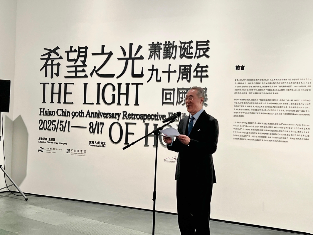 唐英年指出,20世紀國際知名的中國先鋒藝術家蕭勤早年曾在米蘭創立“龐圖國際藝術運動”,與西方著名藝術家互動,對繪畫藝術的演繹是劃時代和革命性,將中國文化融入抽象藝術表達當中,兼容並包,擺脫了形式、技巧和地域限制,强調內心的精神世界,展現人類命運共同體的理念。