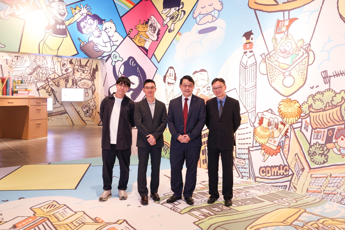 圖為(左起)香港漫畫家蘇頌文、香港動漫畫聯會副會長溫紹倫、香港文化博物館總館長林國輝、香港文化博物館一級助理館長(自然歷史/考古)陳家亮。