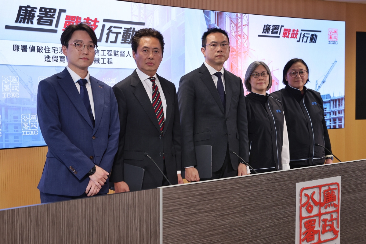 香港廉政公署舉行記者會,公佈偵破一宗涉及住宅發展項目建築地盤的貪污造假案。