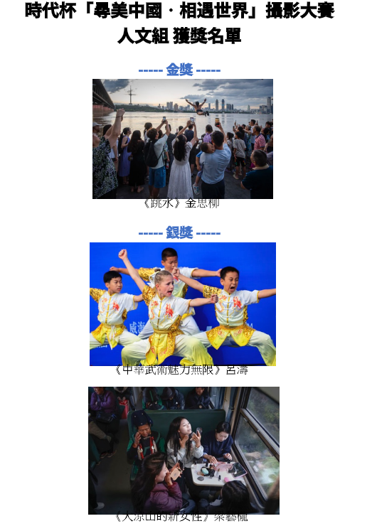 香港新聞網5月25日電 5月25日,由香港中國旅遊出版社主辦的時代杯“尋美中國·相遇世界”攝影大賽獲獎作品正式公佈。人文組、風光組兩個組別各評出金獎1名、銀獎2名、銅獎3名、優異獎15名。 大賽自2024年9月13日啟動,旨在通過全球攝影愛好者的鏡頭,向世界展現中華大地的壯美風光、人文風貌,以及中華文化與世界各國文化的交流交融。截至2025年3月10日,大賽共收到來自55個國家和地區的4.3萬餘幅參賽作品,參賽人數達3082人。