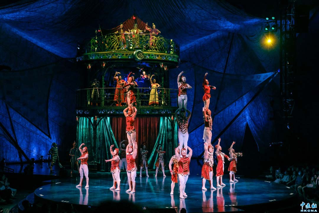 太陽馬戲團《KOOZA》時隔7年後重臨香港,於5月21日起在中環海濱活動空間上演,成為其亞洲巡迴演出的首站。自2007年首演以來,《KOOZA》這場匯集高空雜技、奇幻角色、華麗服裝、豐富佈景、小丑藝術以及震撼現場配樂的精彩演出,已吸引了全球近八百萬名觀眾入場觀賞。(香港中通社記者 曹文毓攝)