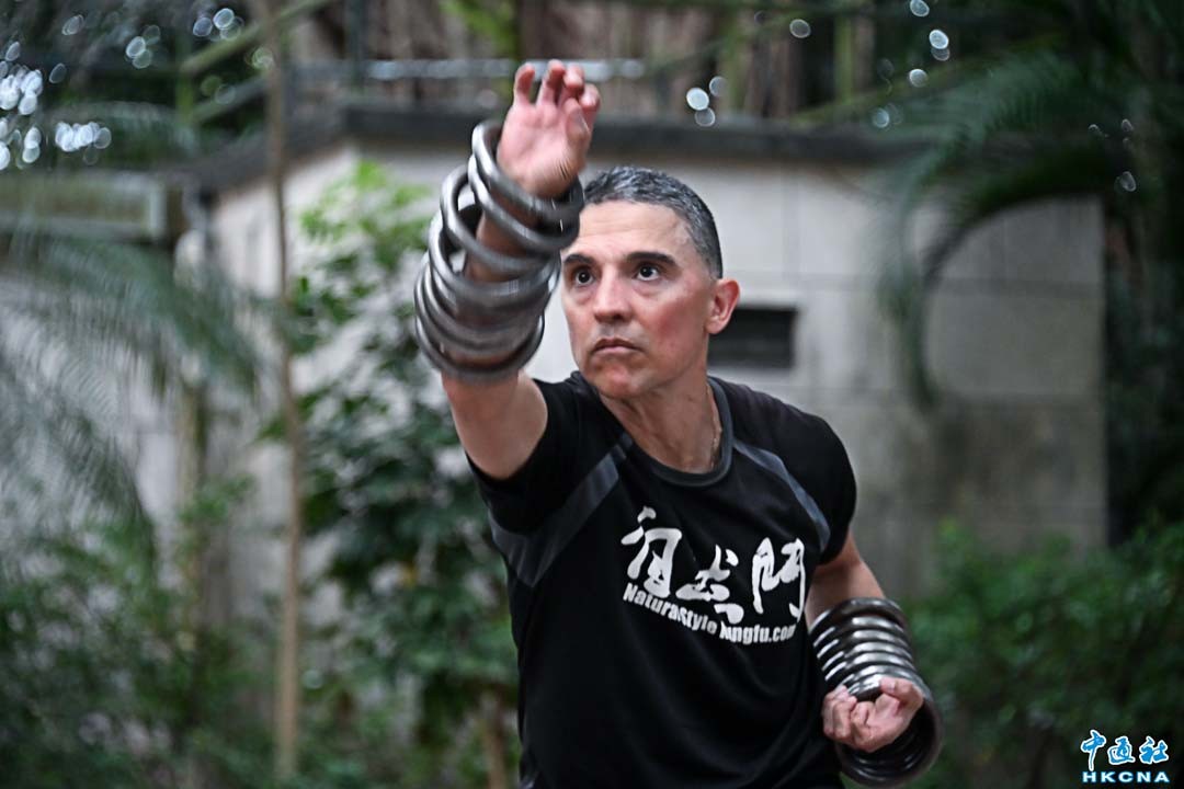 扎根香港的美國人Rudy魯迪為中國武術“開枝散葉”。 他每周都會在九龍公園內,教授外國弟子們自然門武術。 Rudy說,“我教外國人武術,也是希望把中國的好東西,'傳'出去。 現年近60歲的Rudy來自美國德州,年輕時候他遠跨太平洋,來到中國拜師學藝。 他曾在北京體育大學及清華大學學習武術,也前赴少林寺,足跡遍布湖南、福建等地,最後在福州機緣巧合接觸了中華武術流派“自然門”,為之著迷。在他拜師學藝的過程中,一口普通話也講得越發流暢,更認識了自己的香港妻子,并選擇扎根在這座中外文化融合的都市。 (香港中通社記者 洪少葵攝)