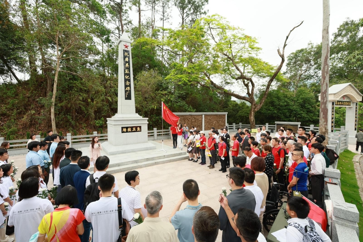 儀式在國歌聲中啓動,全體默哀獻花。青年學生於碑前莊嚴宣誓:“牢記先烈的豐功偉績,傳承偉大的抗戰精神,青春生生不息,奮鬥永不止步,為祖國和香港未來貢獻全力!”李慧琼強調,銘記抗日曆史、緬懷先烈具有重要意義,將激勵更多青年增強國家認同感。陳勇倡議大力發展“紅色旅遊”,活用歷史遺跡開展愛國教育,引導青少年感悟先輩奮鬥精神。 1941年香港淪陷後,八路軍駐港電台撤至東江游擊區。次年4月,電台轉移新界石水澗村,作爲隱秘山村里的唯一一戶人家,村民林戊、林傳叔侄擔任游擊隊交通員,冒死運送物資。彼時中共南委六座電台全數癱瘓,唯獨石水澗的電台與延安黨中央保持聯繫。 1943年2月電台撤離後,日軍循遺留電池線索追查,村民林生(林傳兄長)遭酷刑逼供至死未洩密,成為港九大隊115名烈士之一。 活動中,中學生陳奕杭深受感動,意識到要更加珍惜今日來之不易的和平生活。理大學生黎胤祺分享參觀內地抗戰紀念館的經歷,直言“參與默哀活動後心情十分沉重,對先輩的犧牲與奉獻有了更深的感觸。”烏蛟騰村村長李世藩在抗戰中犧牲,其孫女李妙玲也到了現場,她表示如今政府愈發重視這段抗日歷史,讓烈士家屬們倍感欣慰,“希望更多人能夠了解這段歷史,珍惜今天的繁榮安定。”。 該活動參與協辦團體包括,香港湖南青年會、豐年服務中心、明愛馬鞍山中學、圓玄學院妙法寺內明陳呂重德紀念中學、香港工商總會青年網絡等。(完) 【編輯:張明臻】
