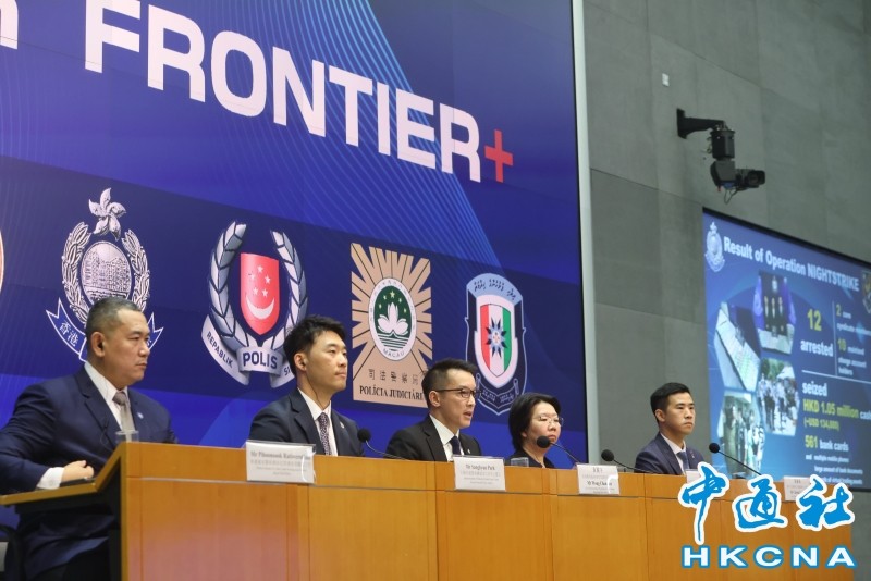 6月3日,香港警務處聯同多個國家地區舉行記者會,簡介聯合打擊跨境詐騙的拘捕行動。香港中通社圖片 香港警務處3日聯同新加坡、韓國、泰國、澳門警方舉行記者會,公佈一項聯合打擊跨境詐騙拘捕行動,成功識別並瓦解多個跨境詐騙網絡,共拘捕1858人,涉及9268宗詐騙案,涉案金額達2.25億美元。 據介紹,涉案詐騙方式變化多端,有網購騙案、電話騙案、投資騙案、租房騙案,以及求職騙案等。不少騙案具相似性,例如去年在香港泛濫的假冒客服案,經本地警方加強執法及宣傳後,今年在香港明顯減少,類似詐騙手法卻在新加坡及澳門出現,騙徒使用相同劇本和藉口。 為加強各地情報交流,去年10月,澳大利亞、加拿大、香港、印尼、澳門、馬來西亞、馬爾代夫、新加坡、韓國以及泰國共10個國家及地區的反詐騙中心,聯合成立反詐騙跨境合作平台“FRONTIER+”。 平台今年4月28日至5月28日首次聯合行動,由香港警務處聯同澳門、馬來西亞、馬爾代夫、新加坡、韓國及泰國警方攜手行動,打擊跨境詐騙犯罪活動。 行動中,七地執法部門出動超過2700名執法人員,拘捕1858人,並凍結32607個銀行帳戶,攔截騙款約2000萬美元(約1.5億港元)。 其中,馬來西亞被捕人數最多、偵破騙案總數最多,有708人被捕,偵破4843宗騙案。韓國在偵破騙案總數排第二,有2275宗,共拘捕116人。泰國則有582人被捕,偵破203宗案件。香港被捕人數為337人,偵破301宗騙案,成功追回/檢獲4950萬港元。