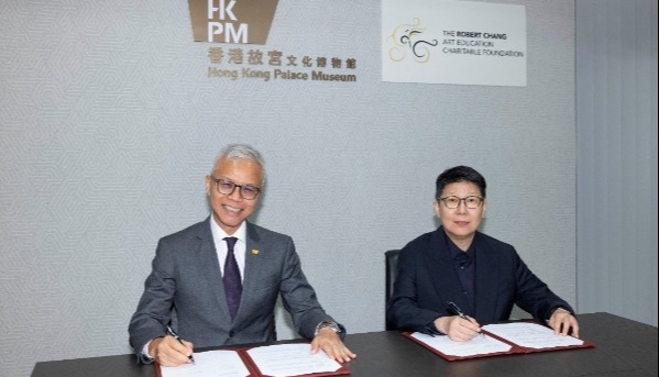 學員代表梁鎮楠與藝術香港總策劃劉偉忠