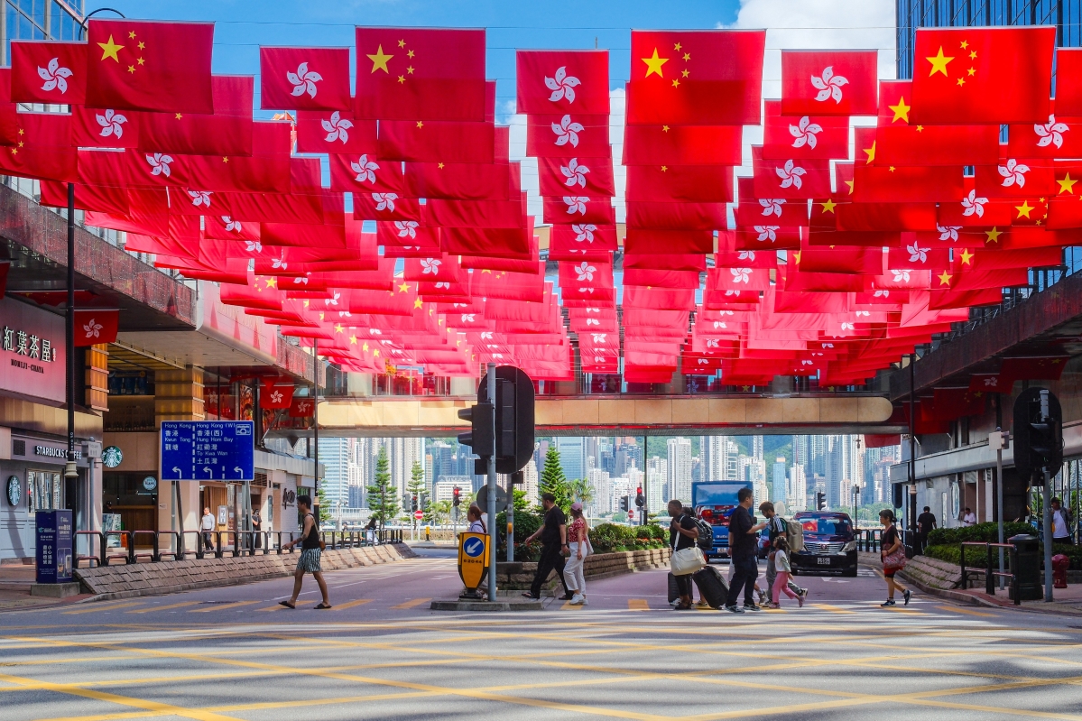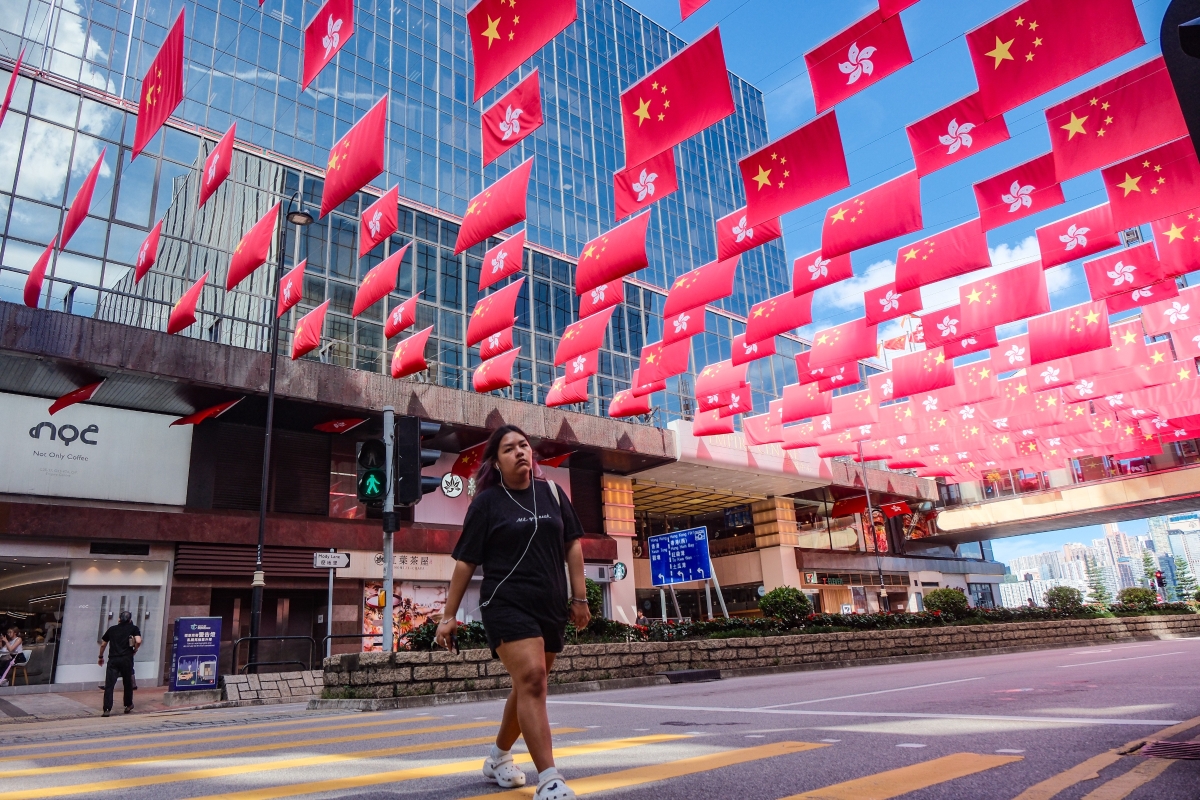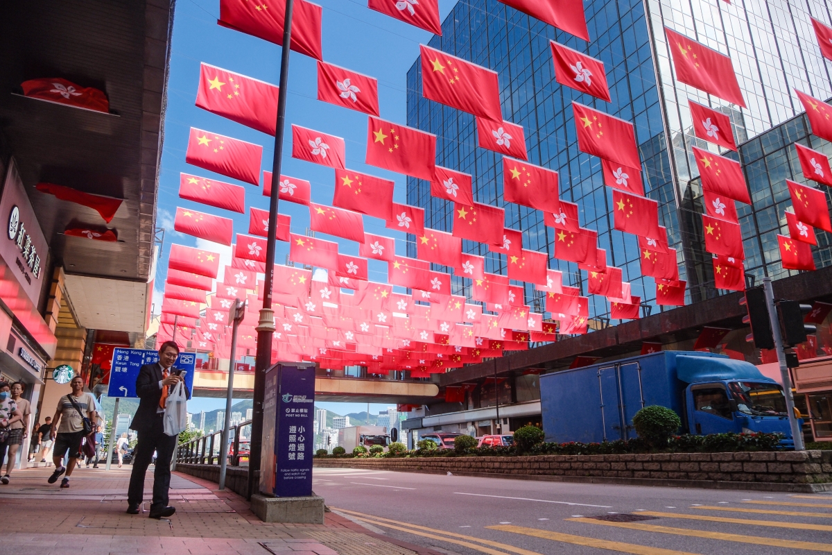香港街頭旗幟飛揚 慶回歸氣氛濃