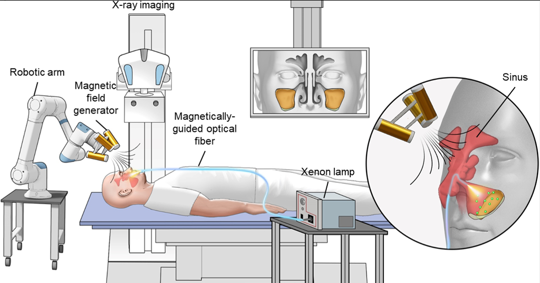 圖源:香港中文大學 根據《刺針》統計,細菌感染已成為全球第二大死亡原因,每年奪去數百萬人的性命。傳統治療方法,如抗生素、沖洗和手術穿刺等的效果往往未如理想,亦容易引發抗藥性與組織損傷。為此,研究團隊研發了創新的治療平台──光催化微型機械人(CBMR),提供一種微創且高度針對性的治療方法,特別適用於鼻竇炎等深層生物膜感染。 光催化微型機械人由單原子銅摻雜的鉍氧碘(BiOI)所構成,並結合精準磁控導航與光激活光催化反應技術。在外部磁場引導下,微型機械人能迅速聚集並導航至感染部位,然後再經光纖引導的可見光啟動抗菌反應,產生光熱效應。這不僅能降低黏液黏度及提升穿透力,亦能產生活性氧(ROS),有效破壞生物膜結構。體外測試顯示,細菌存活率由超過90%大幅下降至低於1%,顯示其強大的殺菌效能。 研究團隊進一步以兔鼻竇炎模型驗證療效,證實微型機械人能穿透濃稠的炎性分泌物,並分解生物膜。經治療後,鼻竇組織恢復正常,炎症顯著減輕,纖維化程度亦大幅下降。該療法亦展現出良好的生物相容性,在光照二十分鐘後未見黏膜損傷,細胞存活率維持在90%以上。 張立教授表示:“我們的目標是研發一種精準及非入侵性的治療方法,以克服傳統療法的局限。這項微型機械人平台不僅展現出卓越的抗菌效能,更為安全且具針對性的深層感染治療開啟了嶄新可能。這項突破性成果標誌著微型機械人療法的重要里程碑,為慢性感染提供一種創新、微創的治療方式,並為耳鼻喉科及其他臨床應用領域開拓新方向。” 這項研究獲得香港研究資助局(RGC)、裘槎基金會、國家自然科學基金、深圳市科技計劃的資助,以及SIAT–中大機器人與智能系統聯合實驗室和InnoHK創新香港研發平台醫療機械人創新技術中心(MRC)的支持。(完) 【編輯:梁嘉軒】