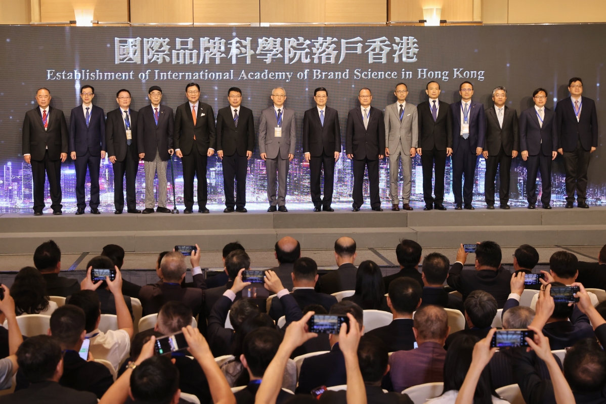 國際品牌科學院、粵港澳大灣區企業家聯盟及國際品牌網在香港會展中心召開“香港首屆世界品牌大會”,國際品牌科學院落戶香港。圖為國際品牌科學院落戶香港儀式