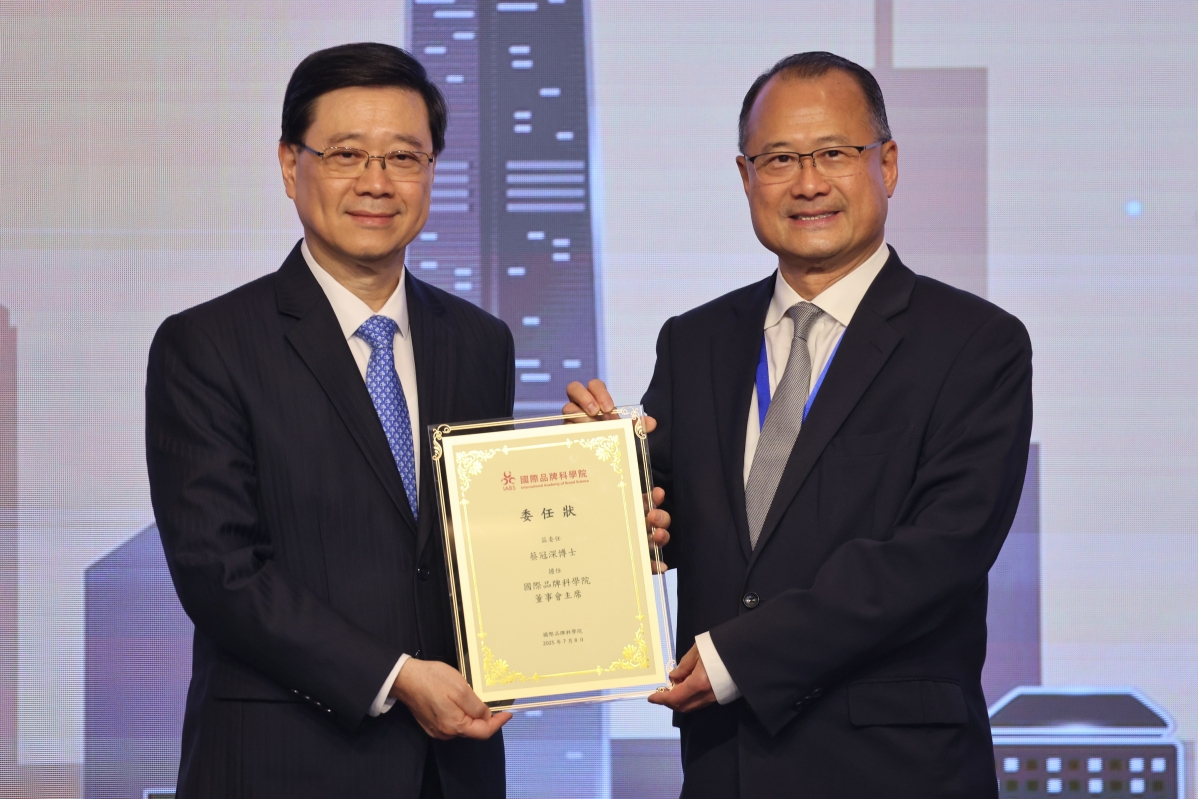 香港特區行政長官李家超向國際品牌科學院董事局主席蔡冠深頒發委任狀