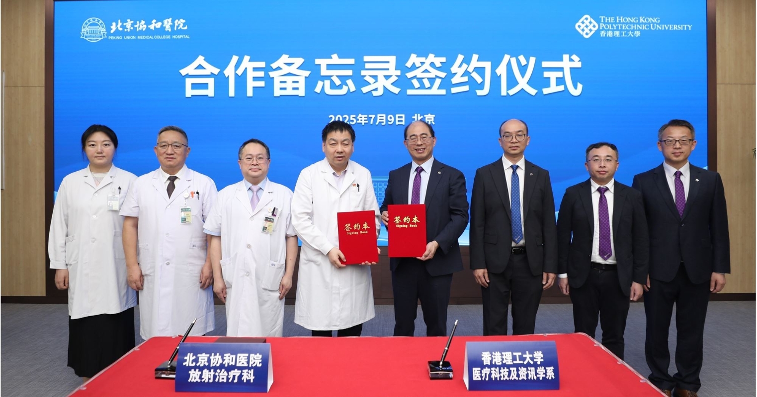圖源:香港理工大學 合作備忘錄簽署儀式當日於北京協和醫院舉行,在理大常務及學務副校長黃永德教授、醫療及社會科學院副院長兼醫療科技及資訊學系教授應天祥教授、應用生物及化學科技學系化學講座教授兼理大中山技術創新研究院院長黃嘉良教授,以及協和醫院副院長杜斌教授及康復醫學與理療學系主任張福泉教授的見證下,由理大醫療科技及資訊學系系主任及教授蔡璟教授和協和醫院放射治療科常務副主任胡克教授代表簽署。 黃永德教授表示:“理大致力推動跨學科創新研究,特別是在醫療健康領域。我們正申請籌建香港第三所醫學院,期望以大學在醫療、工程與人工智能方面的獨特優勢,培育能夠引領未來智能醫療發展的新一代醫學人才。今次合作正是希望將理大在科技創新方面的優勢,與協和醫院百年積澱的臨床經驗深度融合,推動醫學創新。” 杜斌教授說:“首先代表院班子對理大領導與專家的到來表示熱烈歡迎和衷心感謝。醫學進步離不開跨界融合與協同創新。放療科作為國家臨床重點專科,在腫瘤精準治療領域累積了豐富的臨床經驗和科研實力,而理大作為亞洲頂尖的研究型大學,在醫療人工智能、生物醫學工程等領域處於國際領先地位。此次合作在科學研究創新突破的引領下,透過人才共同培養的堅實支撐,加速推動成果轉化應用,開啟高品質發展的嶄新篇章。” 蔡璟教授、黃嘉良教授及理大電子計算學系研究助理柳澤宇先生,聯同胡克教授隨後分別作專題報告,分享各自最新的研究項目及臨床成果,包括人工智能在精準放射治療的應用、抗癌診斷及治療雙功能探針及多模態醫療大模型構建與優化等,進一步深化雙方的專業及學術交流。 雙方代表亦就多個重點合作方向作深入探討,並提出多項具潛力的聯合科研項目,涵蓋腫瘤精準診療、高端醫療設備及腫瘤治療藥物研發等領域。此外,在醫工結合人才培養方面,理大期待未來若最終獲特區政府支持籌辦香港第三所醫學院,協和醫院可望成為醫科生實習醫院之一;同時,理大亦可以為協和醫院的技術骨幹成員提供人工智能驅動醫療的前沿技術培訓,並積極推動雙方交流互訪,共同培養研究生,甚至合辦雙學位課程項目等。 (完) 【編輯:梁嘉軒】