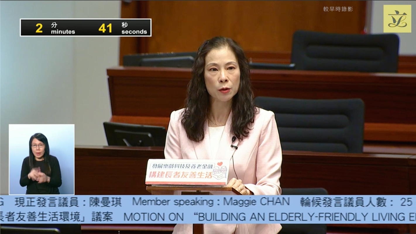 建議重點如下: 1.深化國際交往合作方面,建議香港出口信用保險局與中國信保深化合作,共同開發國際貿易信用風險防範保險産品,爲香港與內地企業出海護航,同步拓展香港法律界海外服務市場。 2.藉今年抗戰勝利八十周年,建議政府高規格表彰東江縱隊抗戰老兵,設立“東江縱隊港九獨立大隊戰士關愛基金”,並提供醫療綠色通道及上門安老照護服務。 同日,陳曼琪於立法會就議員議案“構建長者友善生活環境”發言,建議重點如下: 一、增加樂齡科技應用場景 1. 在長者地區中心和長者鄰舍中心引入智能健康系統並聯網醫院;透過樂齡科技優化社區照顧服務。 2.加強宣傳樂齡科技,結合社區養老空間舉辦體驗日,提升接受度。 3.政府提供宣傳平台,統籌樂齡科技企業參展,促銀髮經濟。 4.擴大“長者社區照顧服務券計劃”適用範圍,允許長者使用服務券購買樂齡科技產品。 5.深化智慧養老政策,在公屋推行“適老化”試點計劃,評估成效後擴展至其他區。 6.優化“樂齡及康復創科應用基金”,放寬個人申請資格,加强宣傳推廣。 二、建設養老金融 1.鼓勵研發樂齡科技,與內地合作,以“香港研發、內地生產”模式降低成本。 2.探索將樂齡科技納入大灣區跨境養老保險產品,促進區域養老融合。 3.優化安老按揭計劃,放寬接受長者以大灣區內地城市住宅物業作為抵押物申請貸款。 4.促進與內地金融機構合作與國際投資,承接跨境養老投資項目,發展香港成為跨境養老投資中心。 (完) 【編輯:譚暢】