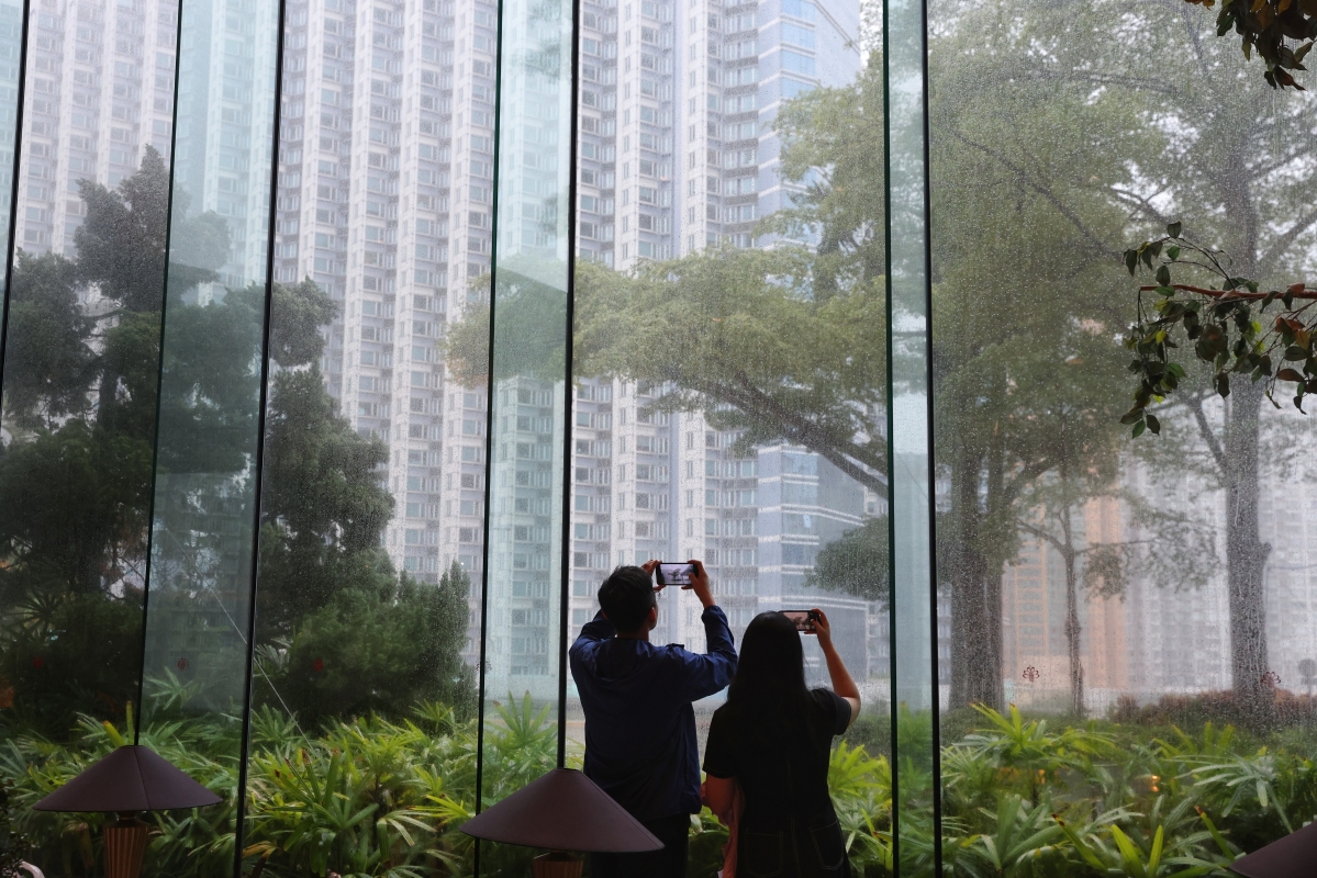 香港市民室內拍攝颱風