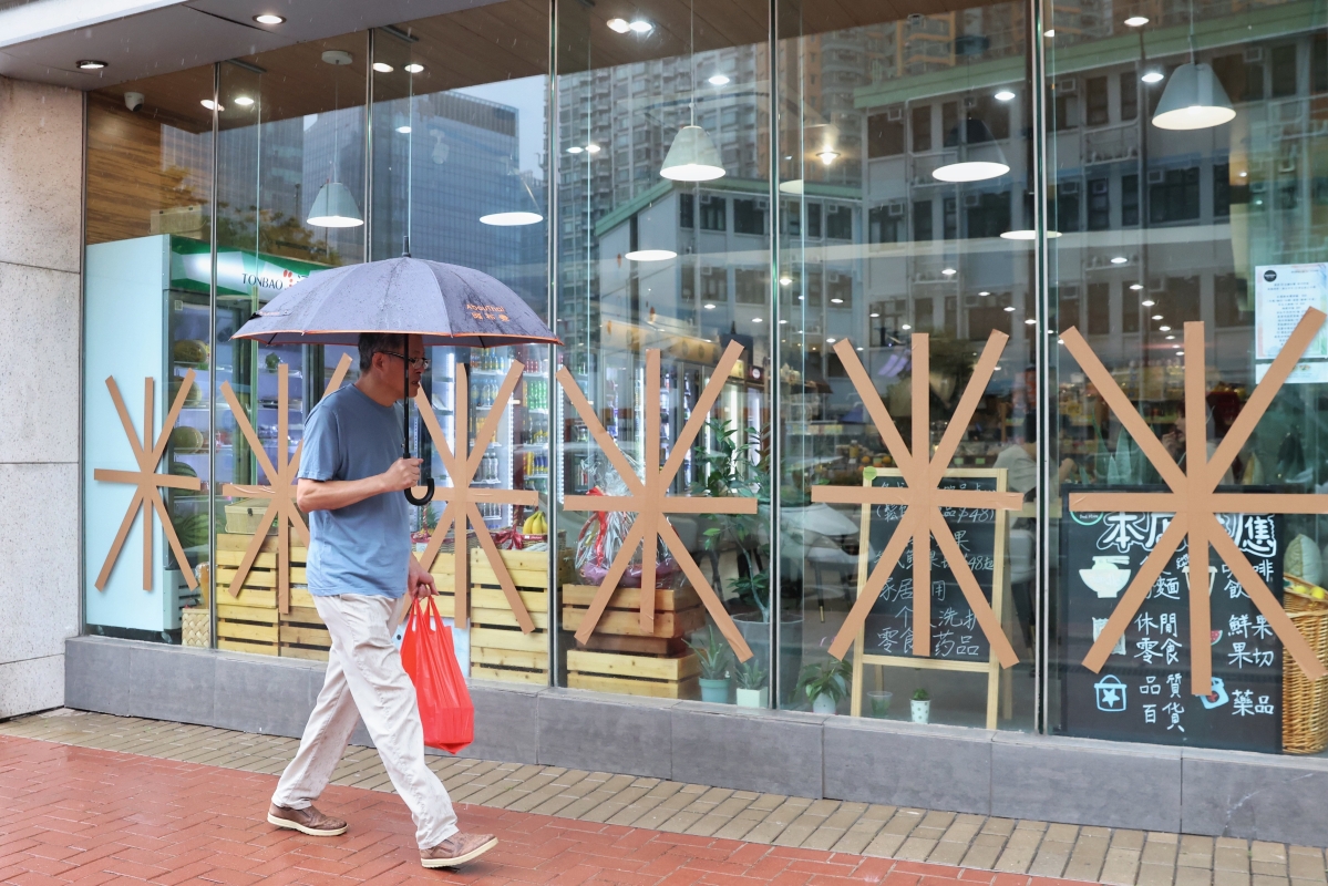 香港市民在惡劣天氣下出行
